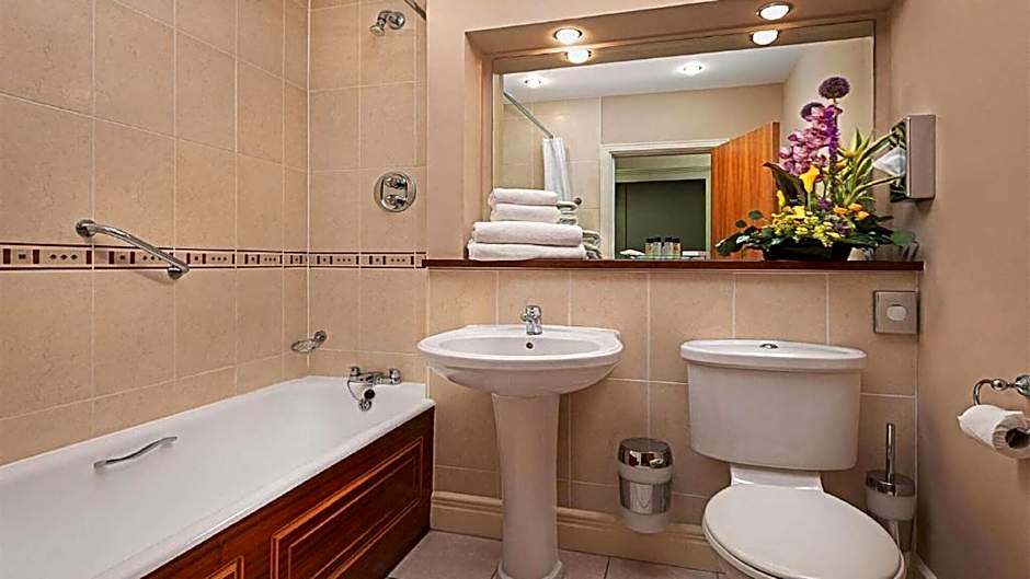 Spacious room featuring crisp white duvet on the bed, an private bathroom, and free Wi-Fi. Also includes a TV, tea/coffee, a work station and an arm chair, as well as full use of the leisure center and free parking.