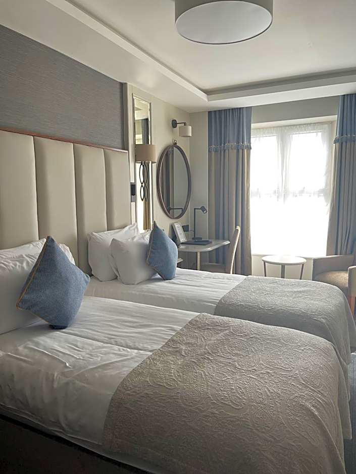Grand Hotel Tralee offers various types of rooms for guests. These include Twin Rooms, Quadruple Rooms, Single Rooms, Double Rooms, Deluxe Twin Rooms, Deluxe Double Rooms, Family Rooms, Triple Rooms, and Superior Family Rooms. Smoking is not allowed in any of the rooms. Room sizes range from 183 sqft to 280 sqft. Occupancy varies from accommodating 1 adult to 4 adults, with some rooms also able to accommodate children. Bed sizes include Twin beds, Double beds, and Bunk beds.