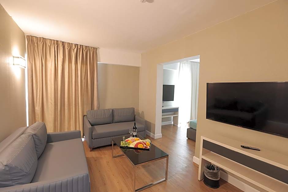 This suite consists of 1 living room, 1 separate bedroom and 1 bathroom with a shower and free toiletries. The air-conditioned suite provides a flat-screen TV with cable channels, a mini-bar, a tea and coffee maker, a wardrobe as well as city views. The unit offers 3 beds.