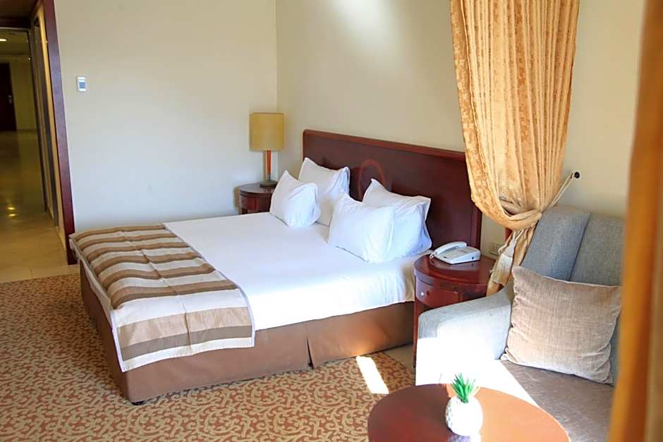This room has a seating area with sofa bed, which can accommodate 2 children. It has a balcony overlooking the swimming pool and the Dead Sea.