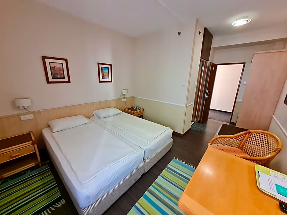 At Beth-Shalom hotel, there are Triple Rooms and Twin Rooms available. The Triple Rooms have a size of 215 sqft, accommodate 3 adults, and have 3 twin beds. Smoking is not allowed in the Triple Rooms. The Twin Rooms are suitable for single occupancy, have the same size of 215 sqft, accommodate 2 adults, and have 2 twin beds. Smoking is not allowed in the Twin Rooms either.