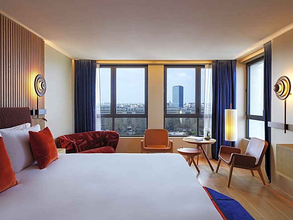 Una varietà di camere offre viste che vanno dai punti panoramici sulla Torre Eiffel ai panorami sui tetti. Esempi includono: Iconic Paris Seine, letto king o 2 singoli, vista Torre Eiffel; Seine Corner Suite, vista Torre Eiffel; Paris, vista sul tetto; e So Paris Presidential Suite Panoramic, vista panoramica, balcone. Questa combinazione di vedute e opzioni invita a un soggiorno a Parigi su misura.