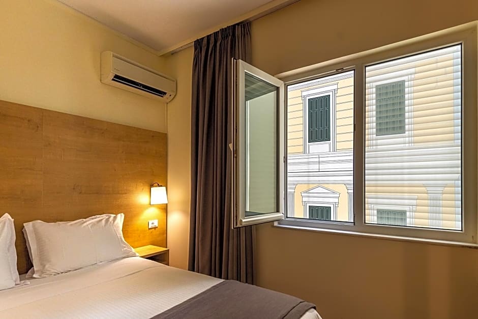 Con una gamma di tipologie di camere tra cui scegliere, il soddisfa le esigenze di ogni viaggiatore. Dalle accoglienti Interior Double Rooms per chi cerca una soluzione confortevole ed economica, alle spaziose Family Rooms con porte comunicanti per gruppi più numerosi, c'è una camera per ogni preferenza. Per chi desidera un tocco di lusso, l'Executive Double con veranda privata e vista Acropoli offre panorami splendidi su questo simbolo iconico. E se cerchi il massimo del comfort e dell'eleganza, la Suite con veranda privata e vista Acropoli offre un ampio rifugio con tutti i servizi che potresti desiderare.