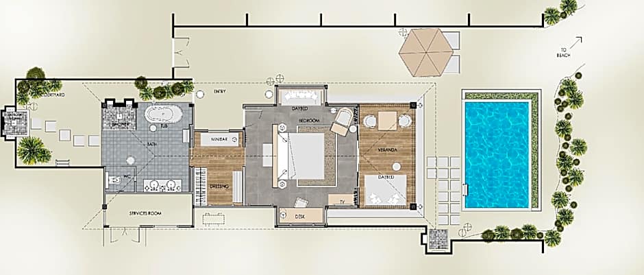 Villa, Letto King, Vista Piscina