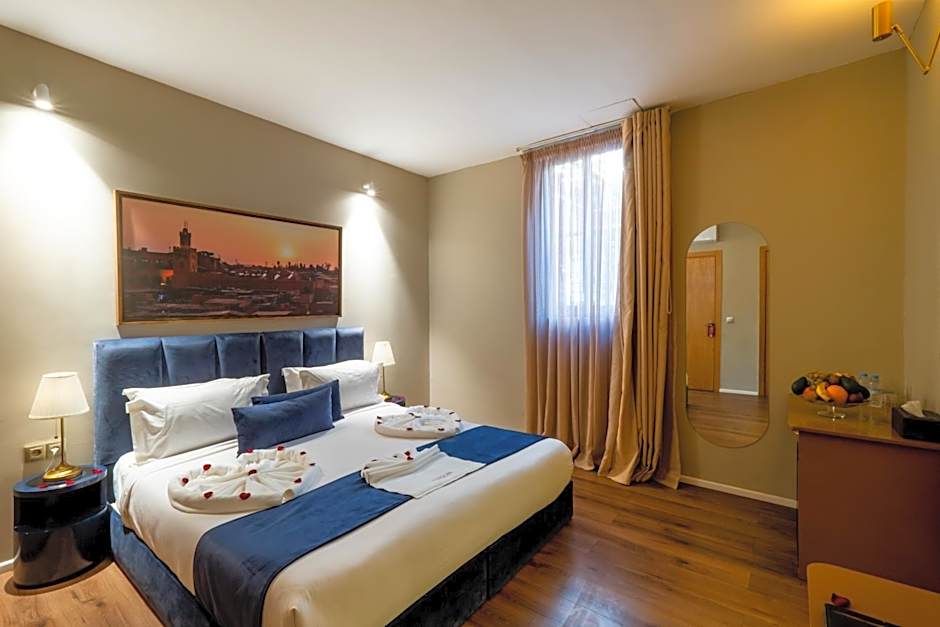 I dettagli pratici per il viaggio sono curati altrettanto bene dietro le quinte: una reception aperta 24 ore su 24 e un banco escursioni per aiutare a pianificare le uscite intorno a Marrakech. All'interno, i comfort essenziali includono aria condizionata, un bar, un solarium e una terrazza, con articoli da toilette gratuiti disponibili per gli ospiti che desiderano un rapido rinfresco.