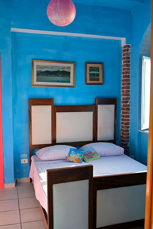 Colorfully decorated apartment featuring a furnished balcony overlooking the Tyrrhenian Sea. It includes a large equipped kitchen and a private bathroom.