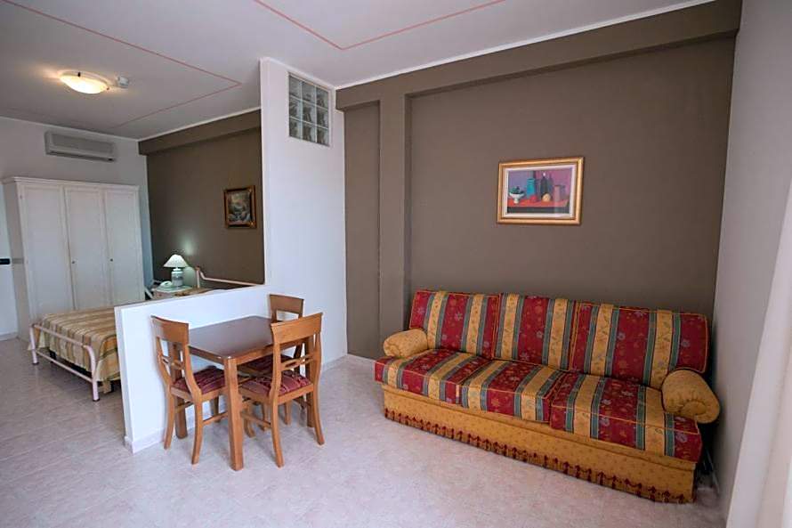 Accommodations come in a variety of formats, including Singles, Standard Rooms, Double Rooms with Partial Sea View or Pool View, Studios, One-Bedroom Apartments, and options designed for three or four guests. Many rooms are non-smoking and arranged to suit different group sizes, with configurations that accommodate two to four adults and feature practical layouts for a comfortable stay by the sea.