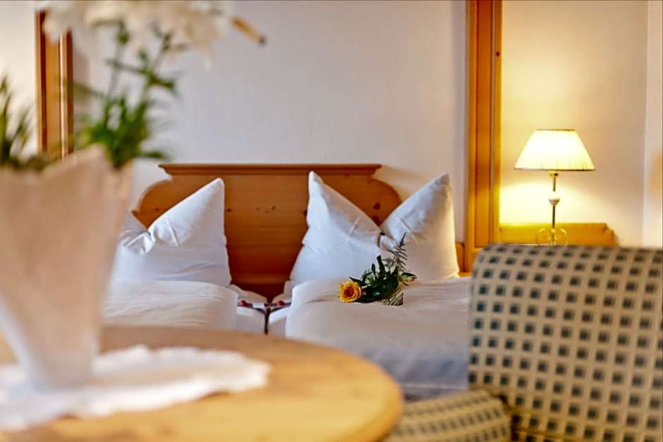 Room with south-facing balcony and four-poster bed or with garden view in main house, characteristic South Tyrolean style, balcony, iPod Docking Station, on arrival your fridge will be filled with apple juice and mineral water, tea maker, high-quality cosmetic product line "pure herbs". Wooden or carpeted floor.