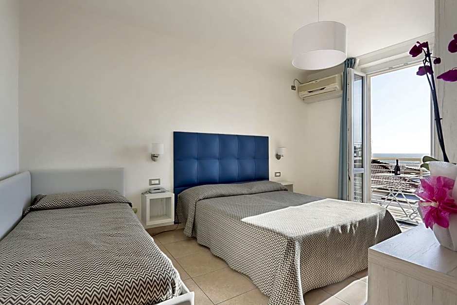 The triple room provides air conditioning, a private entrance, a balcony with sea views as well as a private bathroom featuring a shower. The unit offers 2 beds.