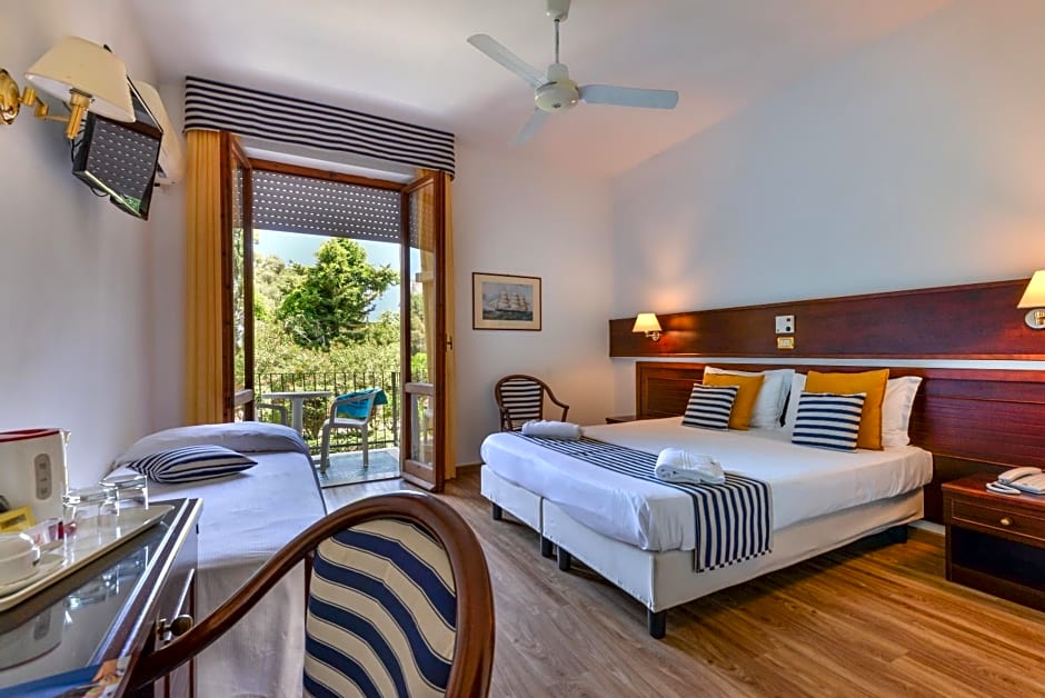Features a balcony overlooking the garden or Mediterranean Sea.