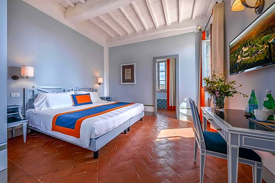 The Deluxe Rooms with double bed, or two single beds, are designed in characteristic Tuscan style with elegant and refined furnishings. Perfect for 2 people, plus a child in cot. (32-35 sqm)