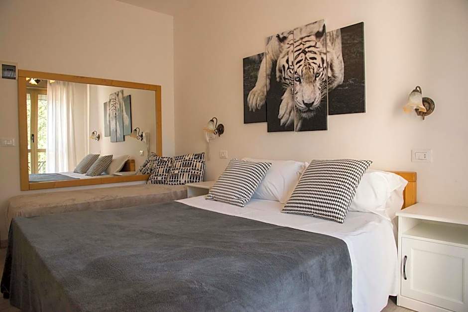 Room options cater to different vacation styles, and each features a balcony with garden or landmark views. Choices include a Double Room with a Queen bed for simple comfort; Classic, Triple with a Twin and a Queen; Classic, Quadruple pairing a bunk bed with a Queen; and Family, Private Bathroom offering a Twin, a King, and two bunks.