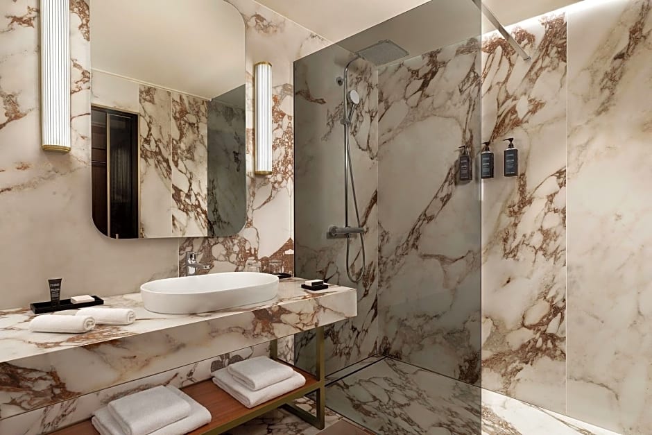 The Sheraton Lake Como Hotel offers a variety of rooms including Prestige King, Deluxe Twin, and Superior King rooms, accommodating 2 adults with a King size bed, or 3 adults with King or Twin beds. Rooms range from 269 to 323 sqft in size. Smoking is not allowed in any of the rooms.