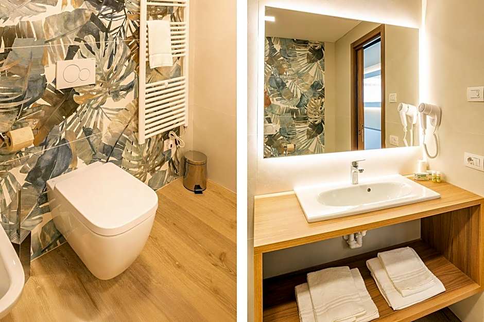 Sport Hotel Olimpo offers Double Rooms with 2 Twin beds, Triple Rooms with 3 Twin beds, and Double or Twin Rooms with Pool View featuring 2 Twin beds. All rooms are non-smoking, accommodate 2 adults and 1 child, and range in size from 205 to 248 sqft.