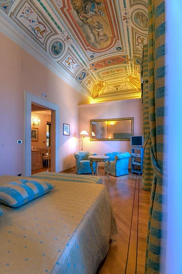 With frescoed walls, this suite features parquet floors, air conditioning and a TV with satellite channels. The private bathroom is complete with free toiletries, slippers and a hairdryer.