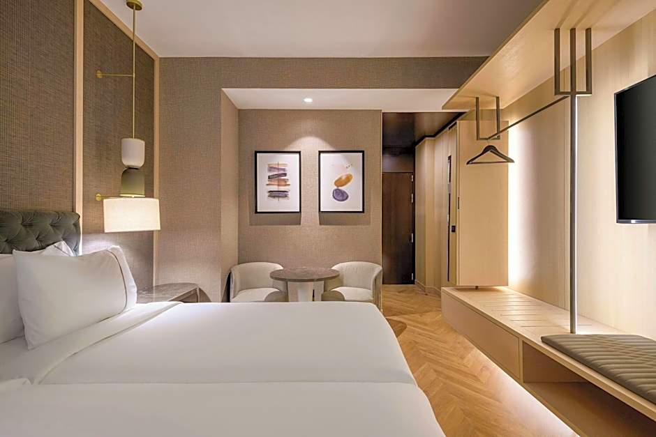 With city views and hardwood floors, this modern, air-conditioned room offers a tea and coffee facilities, a work desk, a mini-bar and a sofa. It also features a flat-screen TV with more than 20 satellite channels, 2 telephones and a fully fitted bathroom with backlit makeup mirror. The bathroom comes with a bathrobe and slippers. High-speed WiFi is free.