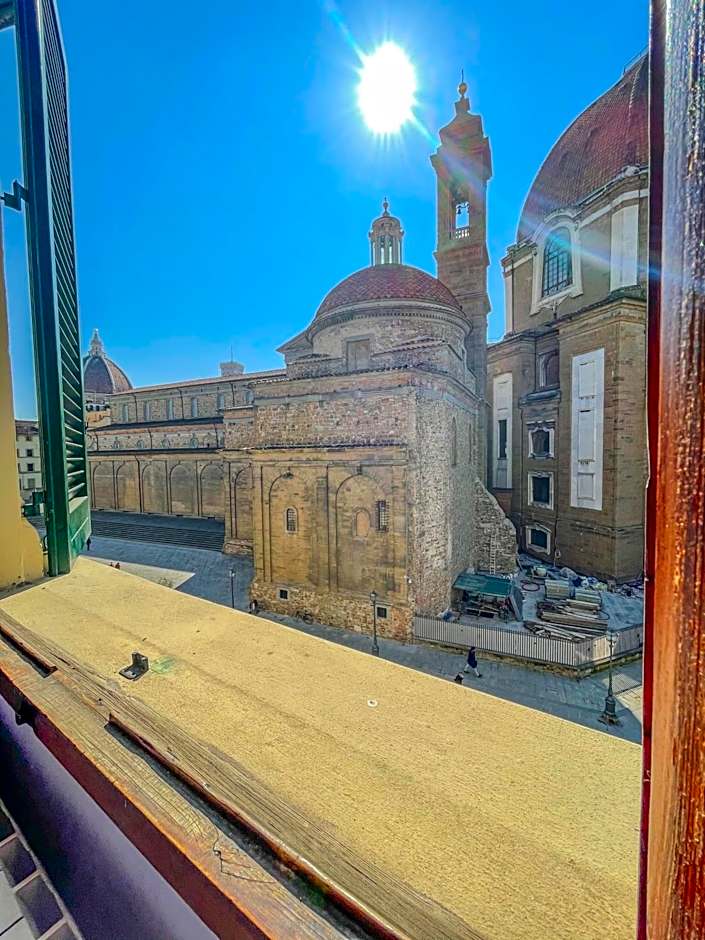 This room features views of the Basilica of San Lorenzo and a private bathroom with a shower.