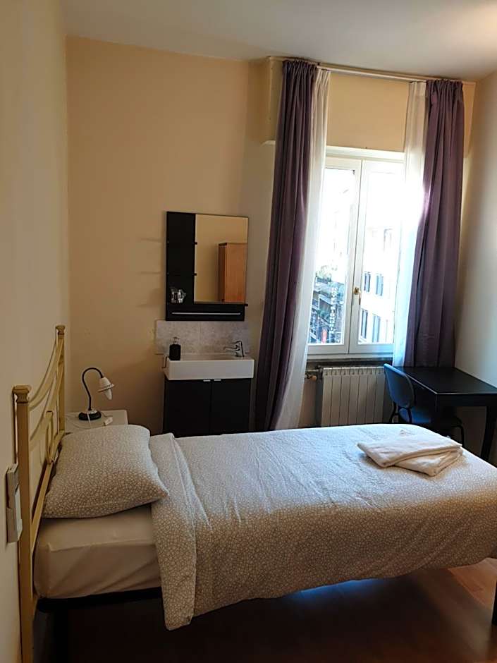 Simple room with parquet floors and washbasin. Offers free Wi-Fi and air conditioning. The shared bathroom is on the same floor.