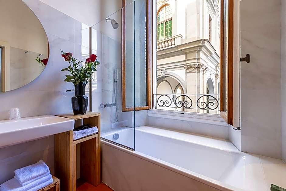 The Superior Double or Twin Room invites you to unwind in an elegantly spacious setting, measuring 258 square feet. With the choice of sleeping with a plush queen-size bed or comfortable twin beds, it’s the perfect spot to recharge. Each accommodation is a delightful escape from the hustle and bustle of the city, ensuring you'll look forward to drifting off to dreamland each night. Imagine waking up refreshed and ready for another day of Florence exploration!