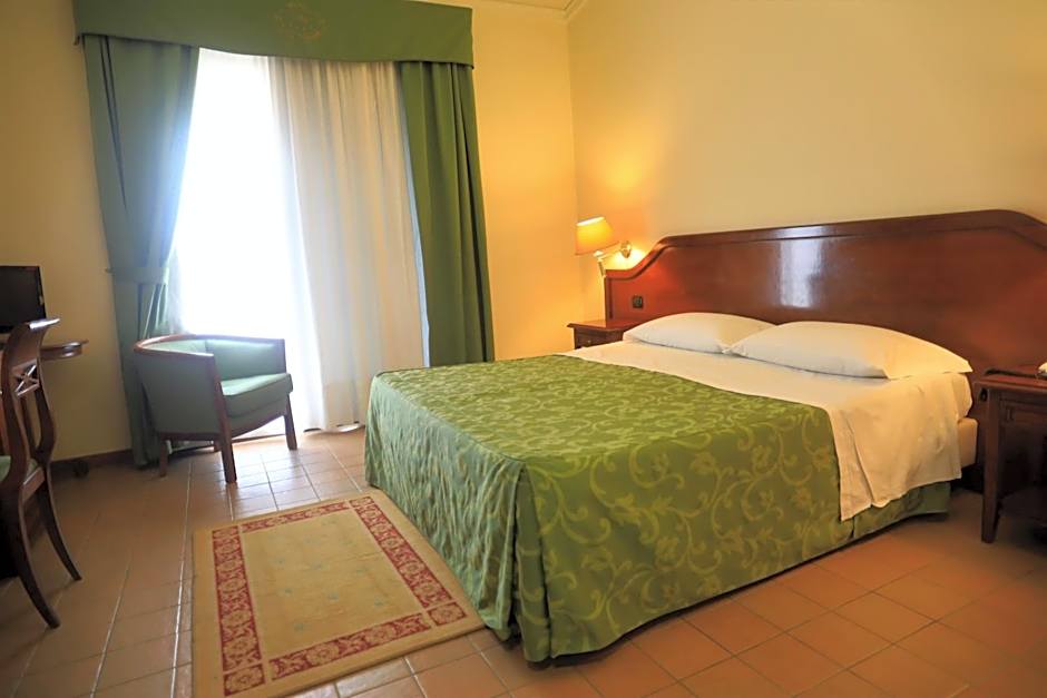 Hotel Villa Peretti offers Deluxe Double or Twin Rooms for single occupancy, which are non-smoking rooms with a Queen size bed. These rooms are suitable for 2 adults and 1 child, with a room size of 215 sqft.