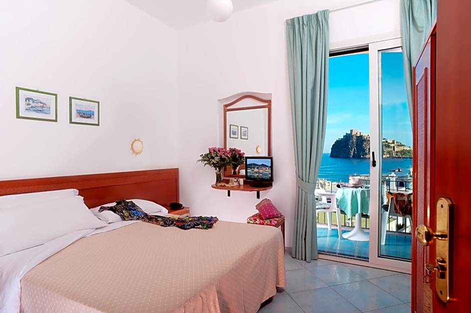 Air-conditioned room with private balcony overlooking the Mediterranean Sea and the Aragona Castle. Offers free Wi-Fi and a satellite TV.