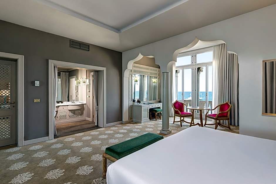 Bem-vindo(a) ao Hotel Excelsior Venice, um luxuoso refúgio 5 estrelas situado no deslumbrante Lungomare Marconi, em Lido, Itália! A poucos passos da impressionante orla marítima, este glamoroso refúgio promete uma experiência inesquecível à beira da pitoresca costa italiana. Com tarifas por noite a partir de $398, é um mimo que garante prazer, quer esteja a apanhar sol junto à piscina exterior ou a desfrutar de um tranquilo pequeno-almoço para se preparar para um dia de aventuras.