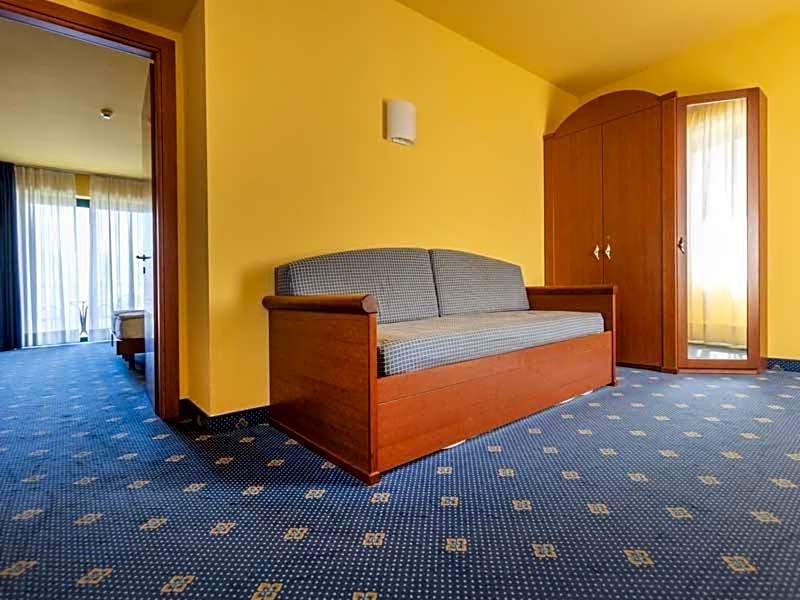 Conveniently accommodating four adults, the Quadruple Room with Lake View promises a comfortable and spacious stay. Enjoy breathtaking views of the surrounding mountains and the stunning Lake Garda from the privacy of your room. With a queen-size bed and a sofa bed, this room provides ample space for relaxation after a day of exploring the city or partaking in the hotel's various amenities. Immerse yourself in comfort and luxury as you unwind in this well-appointed accommodation tailored for a memorable Italian getaway at Natur Resort Panorama.