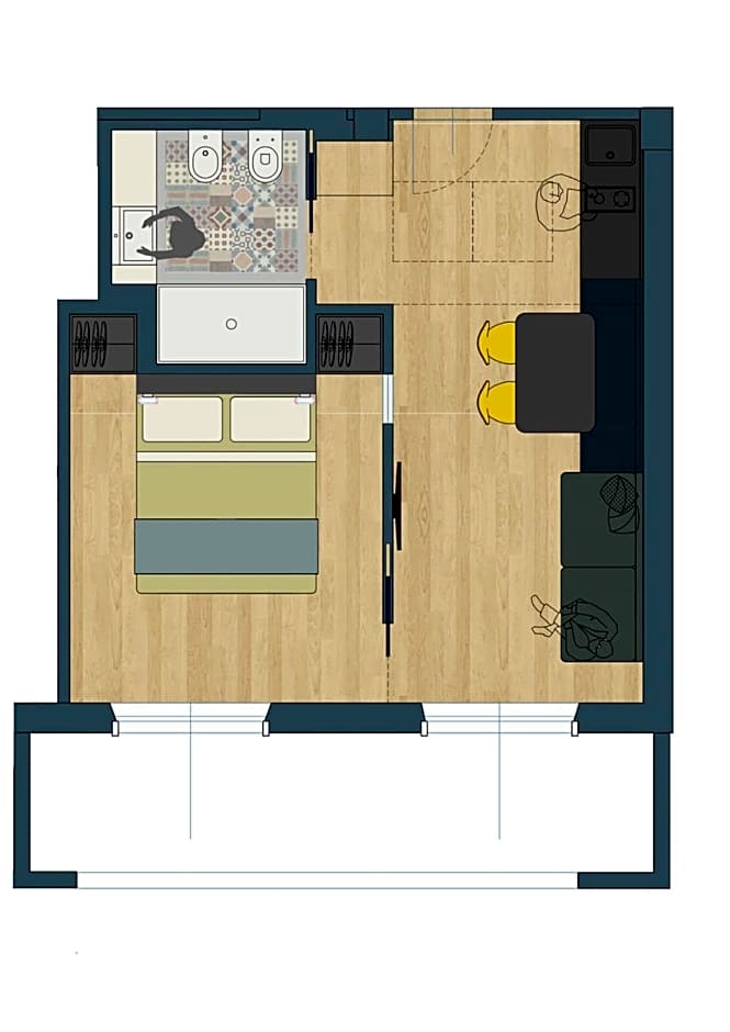 Guests can make meals in the kitchen that has a stovetop, a refrigerator and kitchenware. This air-conditioned studio is consisted of of a flat-screen TV with satellite channels, a private bathroom as well as a balcony. The unit has 1 bed.