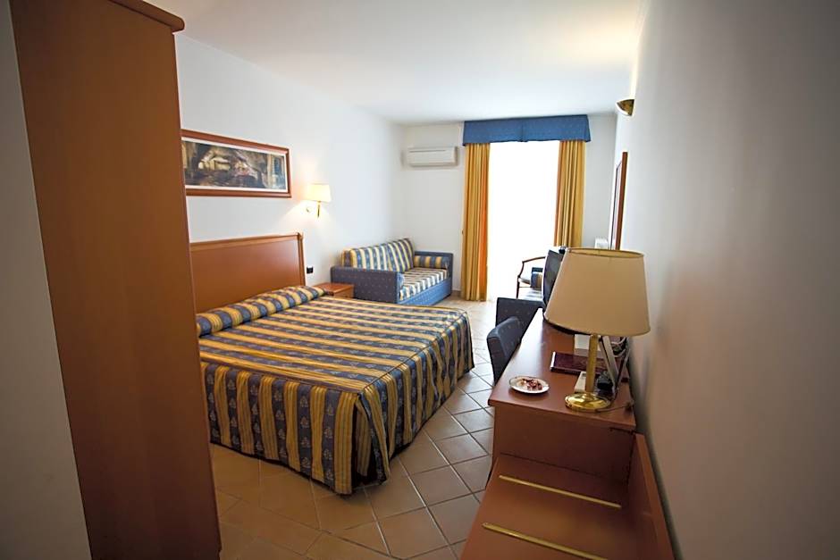 Accommodations in a Junior Suite, single space with a double bed and 1 sofa bed, air conditioning, mini-bar, telephone, TV, safe, private bathroom with shower, hairdryer, and balcony with panoramic view.