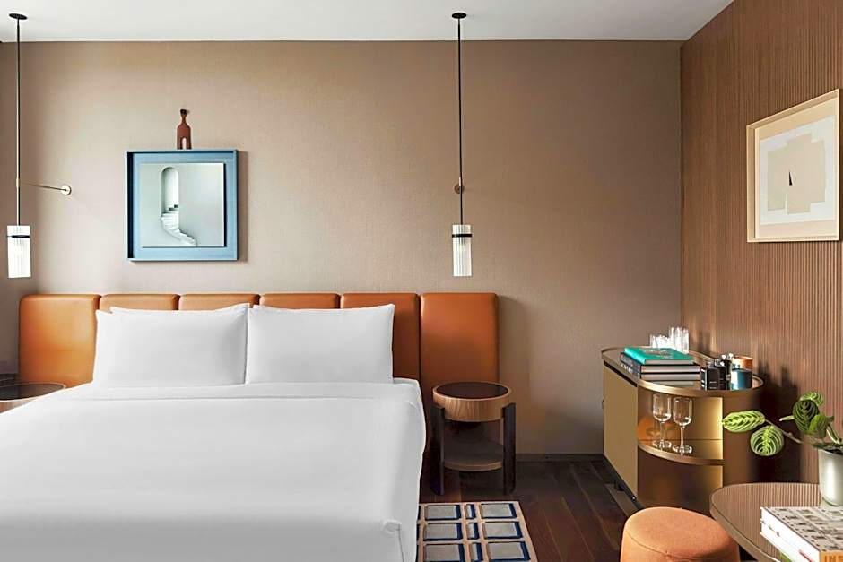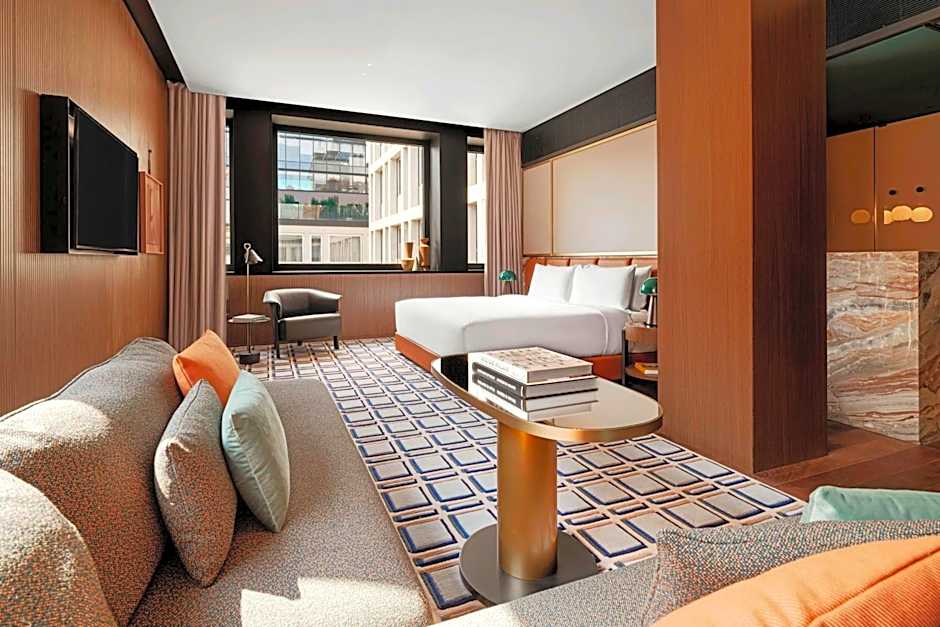 An outdoor heated rooftop pool with a view invites a soak in any season, and access is complimentary. The pool area operates with an adults-only policy, adding a quiet, exclusive touch to skyline moments. Free live music performances and a streaming service (like Netflix) sprinkle entertainment into evenings. Other practical comforts include free Wi-Fi, air conditioning, a bar, a terrace, and a balcony for soaking up the city vibe.