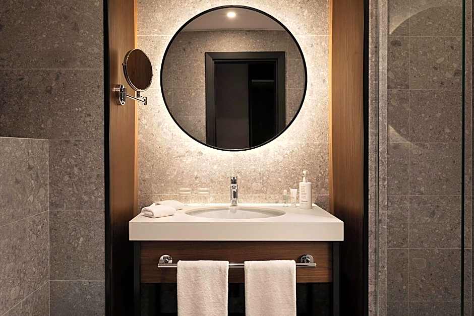 Larger room featuring a private bathroom with a bath, soft bathrobes and slippers. Room offers complimentary nonalcoholic beverages in the Club Lounge.
