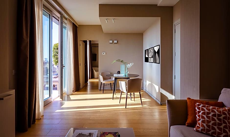 The hotel offers a variety of rooms including Suites, Double rooms, and Twin rooms. All rooms are non-smoking. The Suites, including the Suite Colombo with spa access, the Suite Terrace with spa access, and the Junior Suite with Spa Access, are larger in size ranging from 323 to 646 sqft. The Double and Twin rooms are smaller in size, ranging from 161 to 301 sqft. The occupancy for most rooms is 2 adults with no children, but the Junior Suite with Spa Access can accommodate 2 adults and 2 children. The available bed sizes include King, Queen, Double, and Twin beds.