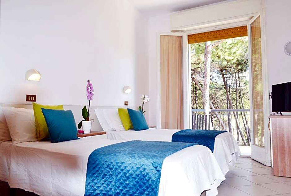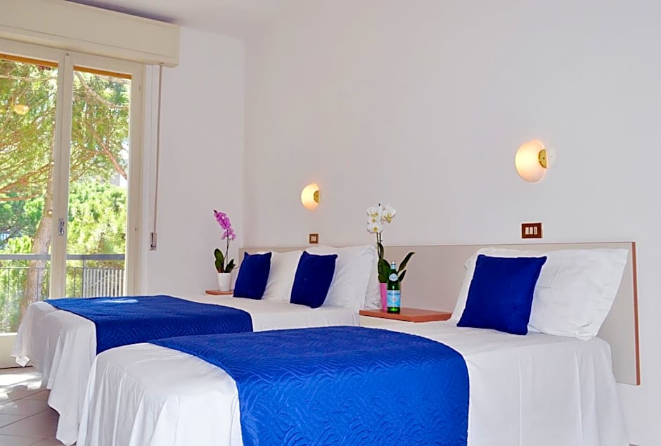 On Milano Marittima’s coastline, direct beach access opens up to a private beach area with chairs and loungers, making sand days effortless. A seasonal outdoor pool with an infinity edge, shallow end, and a view offers a refreshing alternative for sun seekers, with pool access coming at an extra charge. The overall vibe stays relaxed and beach-forward, with plenty of practical touches to keep days smooth and enjoyable.