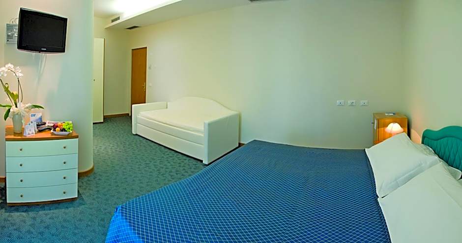 This quadruple room has a balcony, cable TV and air conditioning. It also offers mini-bar, a safety deposit box and telephone. The private bathroom comes with a shower, hairdryer and bidet.