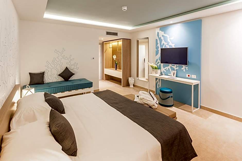 This suite is consisted of of 1 living room, 1 separate bedroom and 1 bathroom with a shower and free toiletries. The air-conditioned suite offers a flat-screen TV with satellite channels, soundproof walls, a mini-bar, a seating area as well as sea views. The unit offers 4 beds.