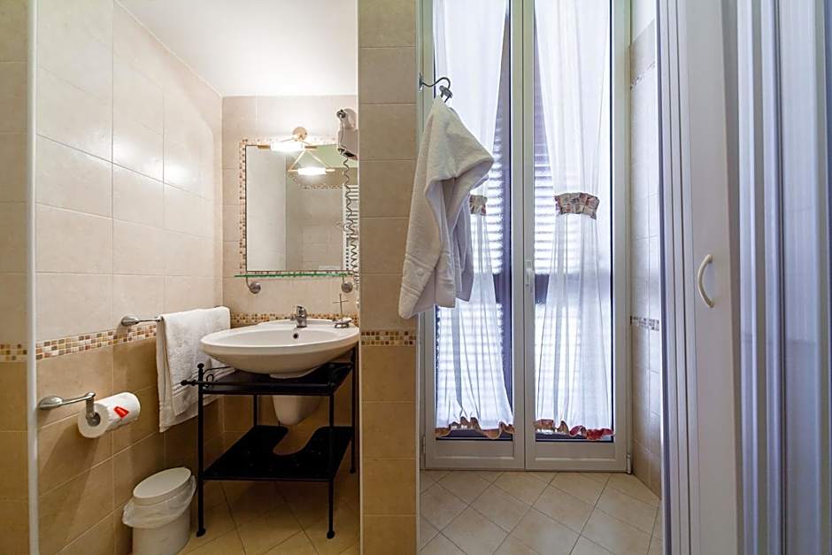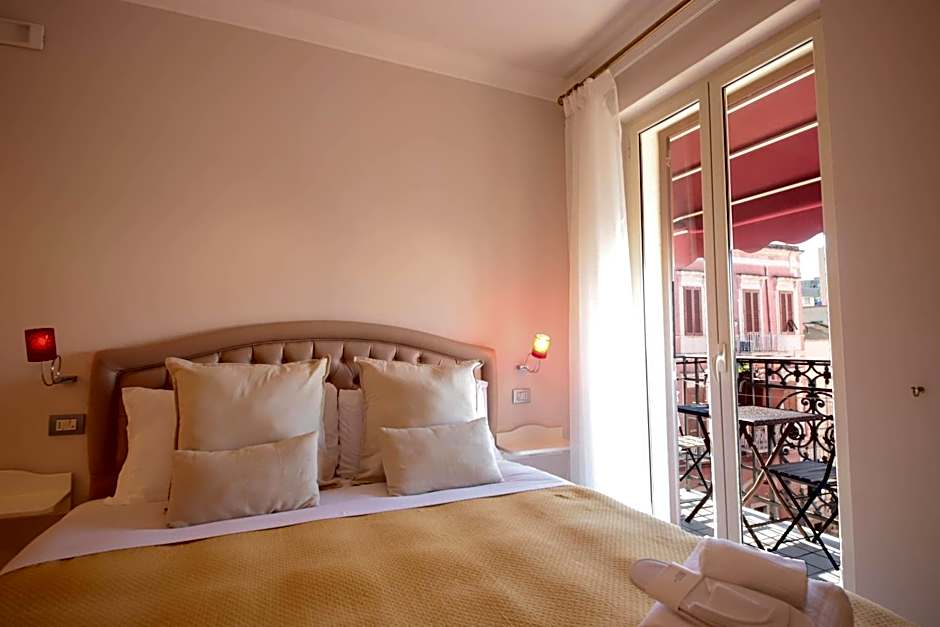 Room with attached bathroom with tiled floors and a small balcony overlooking the streets of Monopoli. Offers free Wi-Fi and a flat-screen TV with satellite channels.