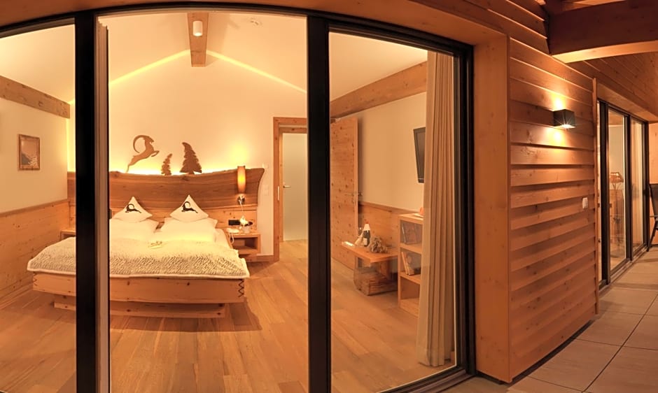 Alpine-style suite with a mountain-view balcony, free WiFi and a satellite flat-screen TV, together with a mini-bar and wooden floors. The private bathroom includes a hairdryer, free toiletries and bathrobes.