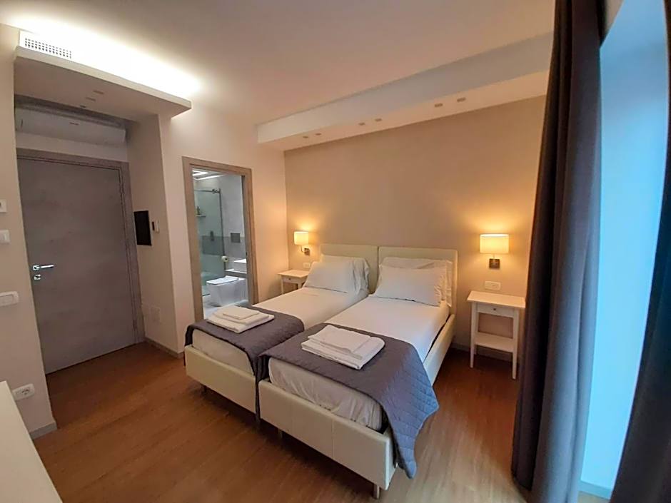 Martucci 83 hotel offers a variety of rooms including Standard Double or Twin Rooms with Balcony, Triple Rooms with Private Bathroom, and Deluxe King Rooms. Smoking is allowed in the Standard and Triple rooms, while it is not allowed in the Deluxe King room. The room sizes range from 161 sqft to 323 sqft. Occupancy varies, accommodating either 2 adults and 1 child or 3 adults and 1 child, depending on the room type. The bed options include Queen size beds, Twin beds, and a combination of both.