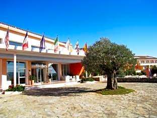 Address: 2 Via Sa Serra. The hotel features an outdoor swimming pool, a private beach area (extra charges), and free private parking, along with free WiFi and room service. Dining options include a restaurant and a bar, while amenities like air conditioning, a 24-hour front desk, non-smoking rooms, terrace, sun deck, garden, and beach chairs/umbrellas add comfort. Parking on site is free, and elevator access is available; meeting/banquet facilities, babysitting/child services, and massages are offered for an extra charge.