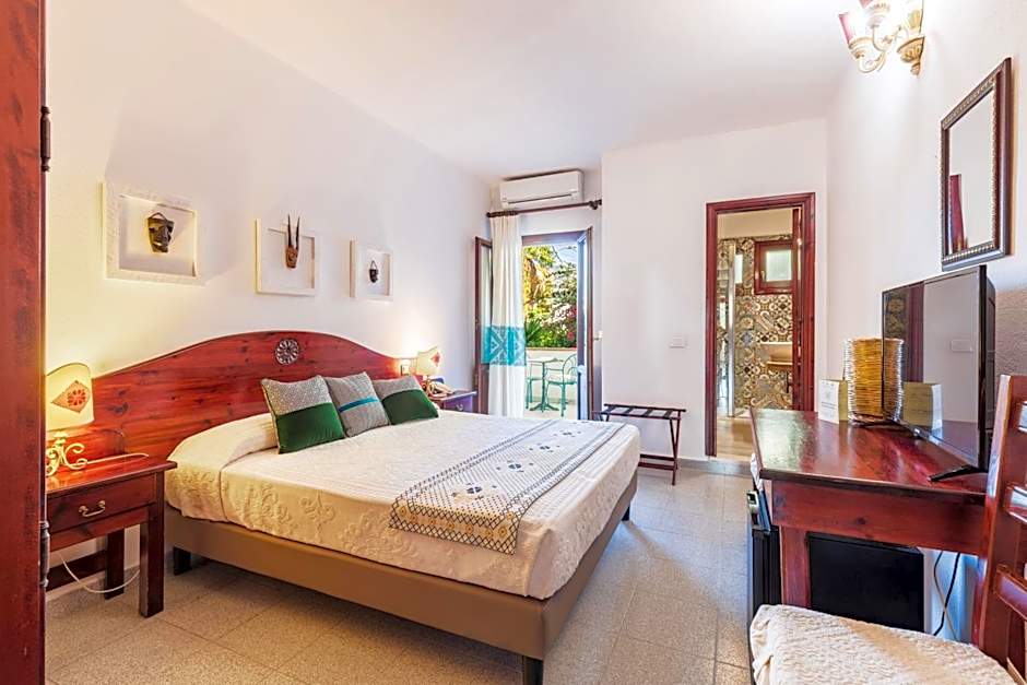 Decorated with Sardinian-style décor, this smaller room features air conditioning, a TV and an private bathroom.