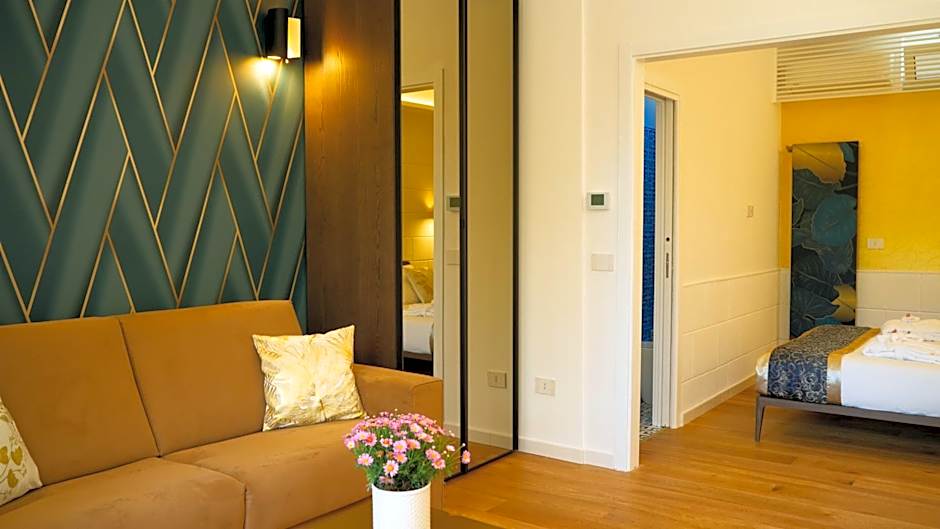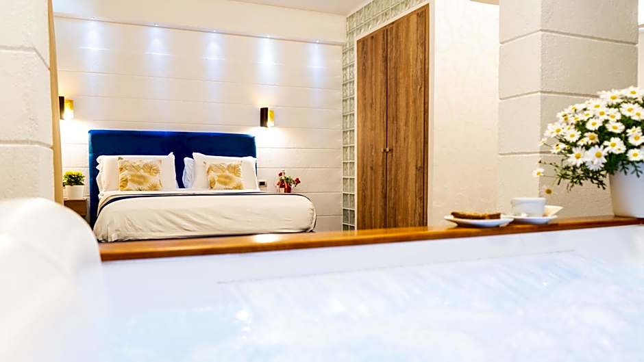 Featuring a self-standing chromotherapy hot tub for 2 people, this deluxe suite features a furnished terrace, a separate seating area with a 42" LED TV, mini-bar. Hot Tub size 180x130x70cm, chromotherapy with 18 leds. Hydromassage with 16 jets and 4 waterfalls.The rooms and furniture were renovated in 2023