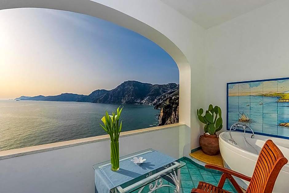 Features handmade Vietri floors and balcony with hot tub and panoramic views of the Tyrrhenian Sea.