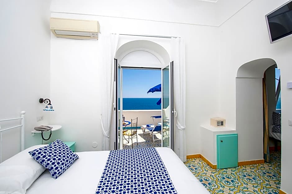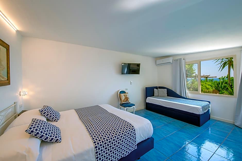 Rooms are air conditioned and offer a view of the Amalfi Coast.
