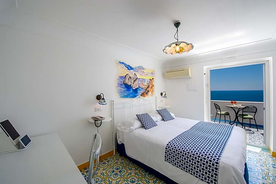This larger room is air conditioned and offers a view of the Amalfi Coast.