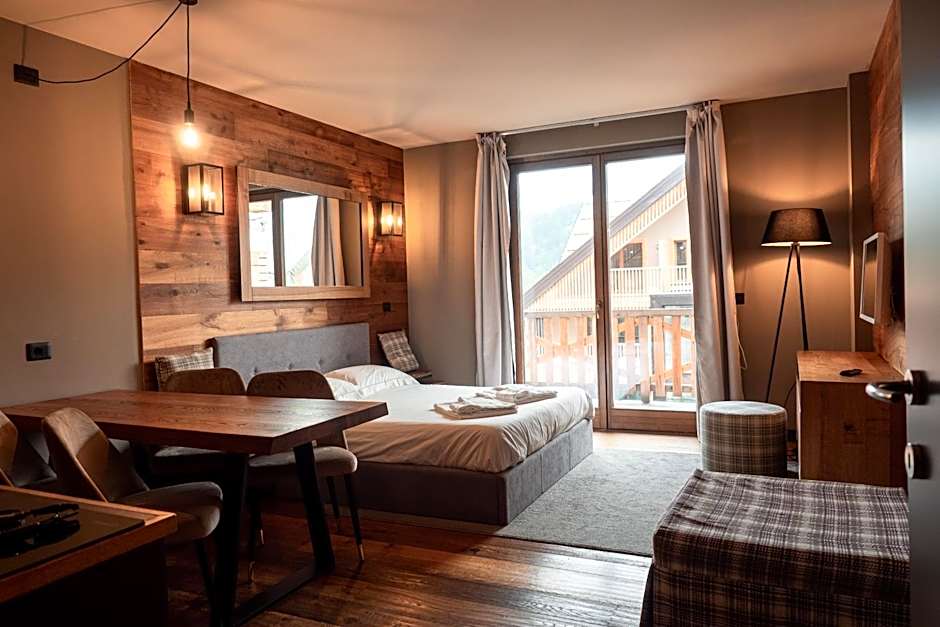 On-site perks lean into alpine charm: skiing, free parking, free wifi, and free live music/performances, all set on a terrace with mountain views. Some layouts also feature balconies and soundproofing to keep nights serene.