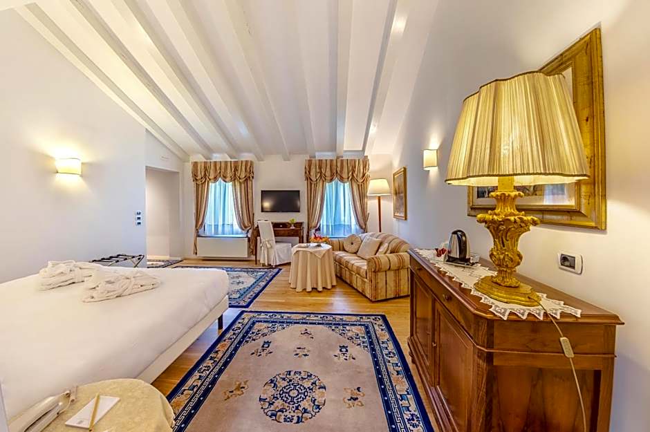 Located on the first floor of the annex building, this spacious room features a Venetian design. It offers air conditioning/heating, free wired internet and a LED TV with Mediaset Premium channels.
