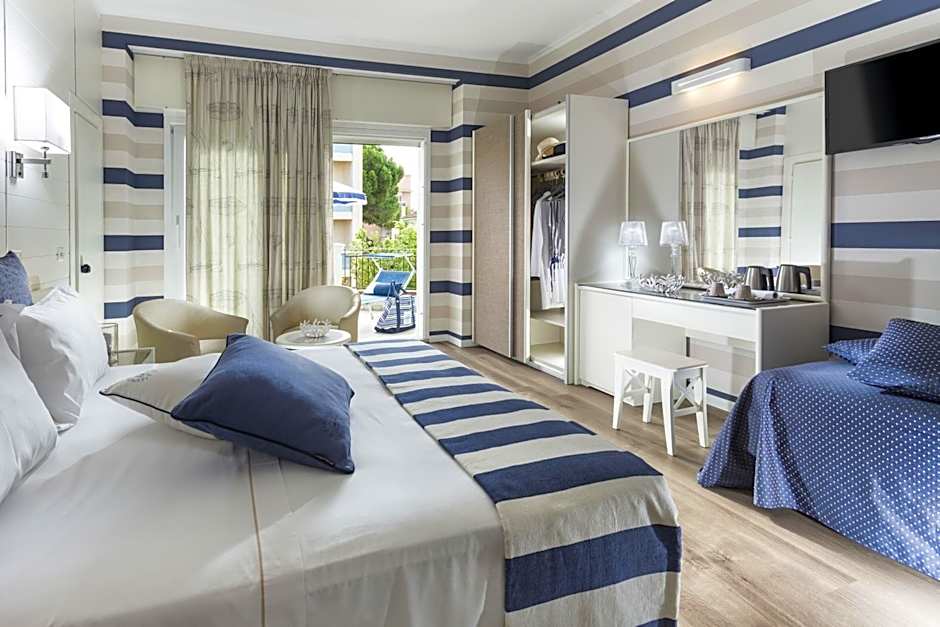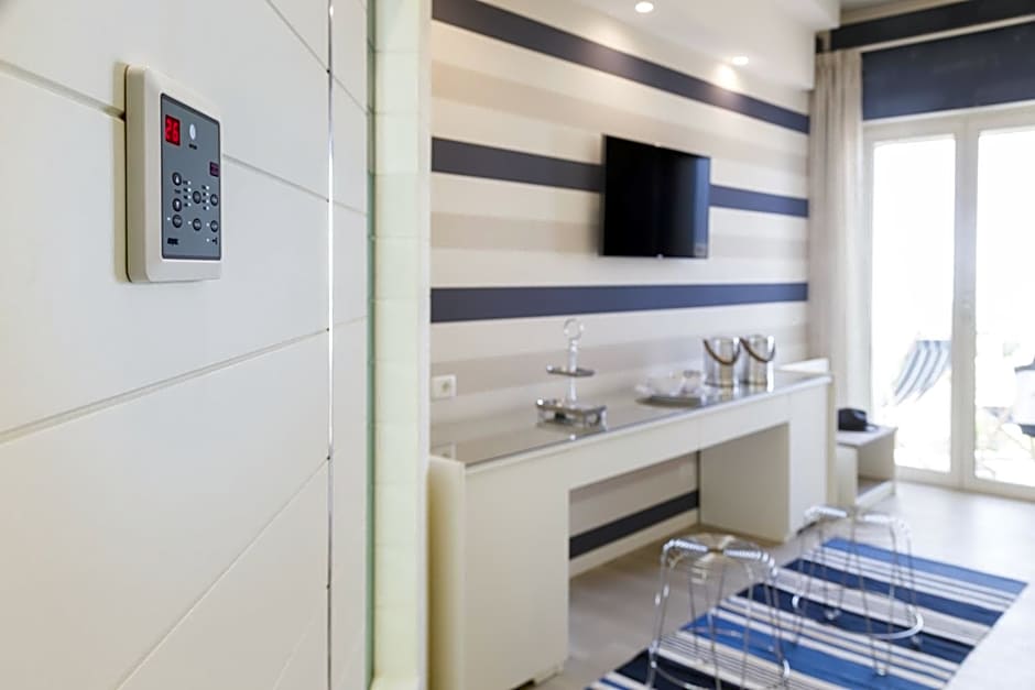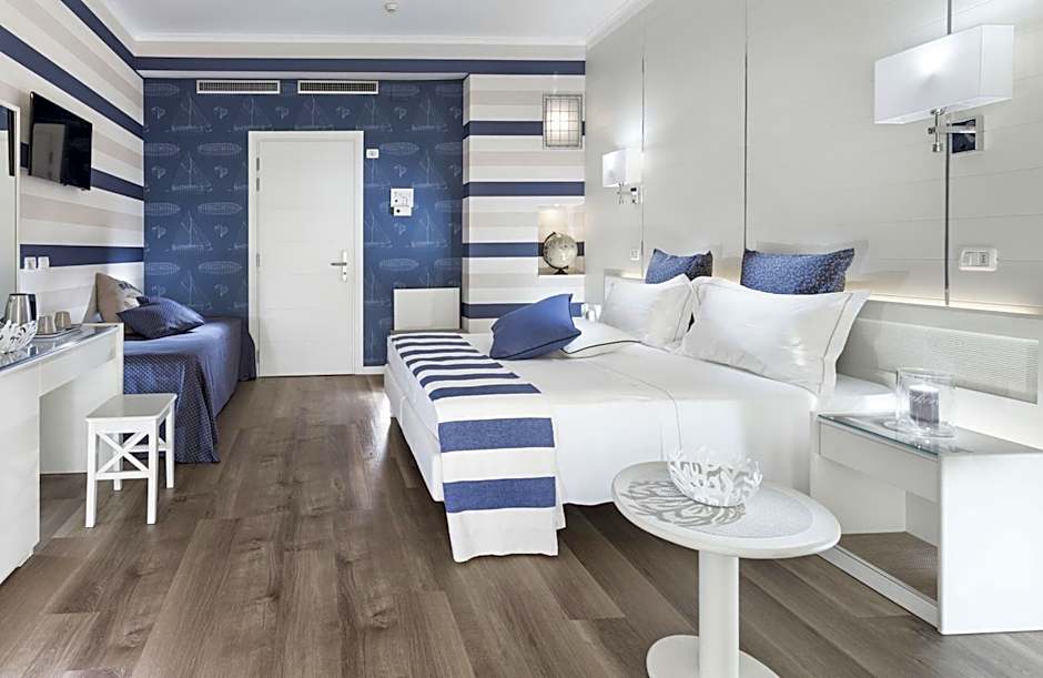 The Hotel Atlantic Riviera Mare offers a variety of rooms including single rooms, double rooms, and suites. Occupancy ranges from single occupancy to accommodating families of four. Rooms are non-smoking and offer different bed sizes such as twin beds or double beds, with varying room sizes for guests to choose from.