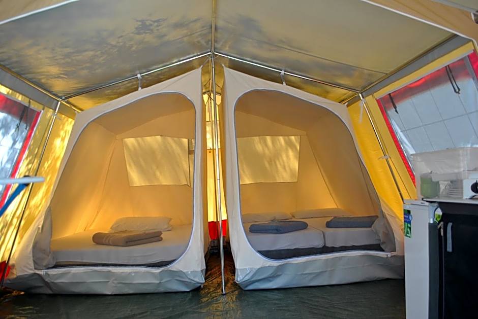 텐트, 4 트윈 베드, 공용 욕실
