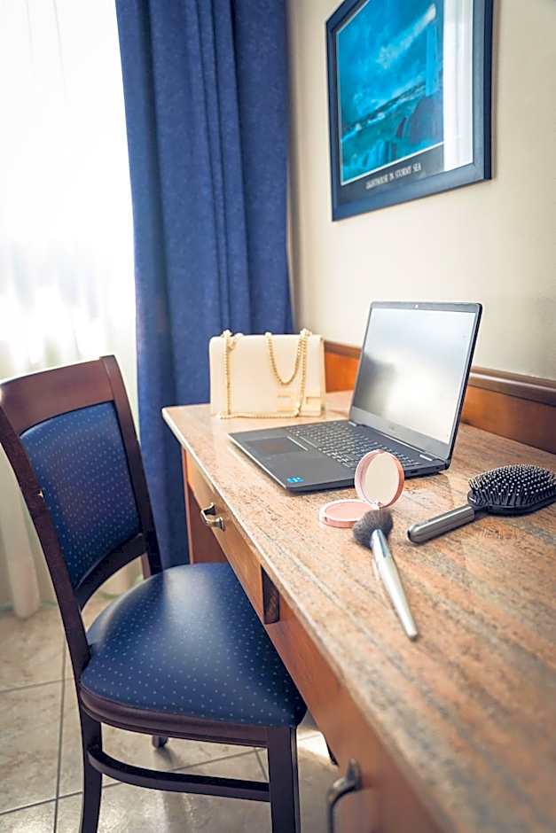 Air-conditioned room featuring a satellite TV, mini-bar and tiled floors. Wi-Fi is free. The Hotel has a Summer Swimming Pool (Entrance with extra charge)