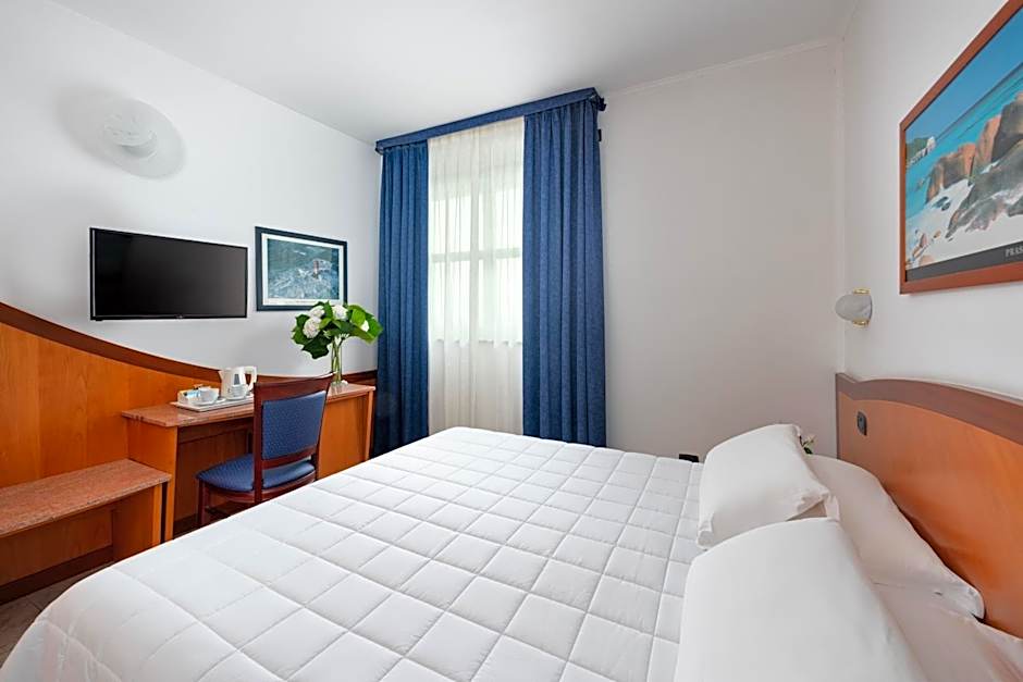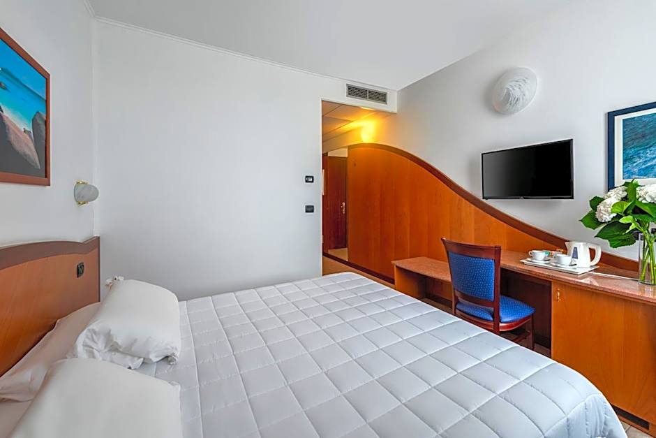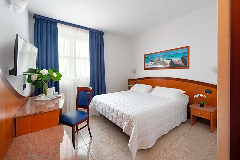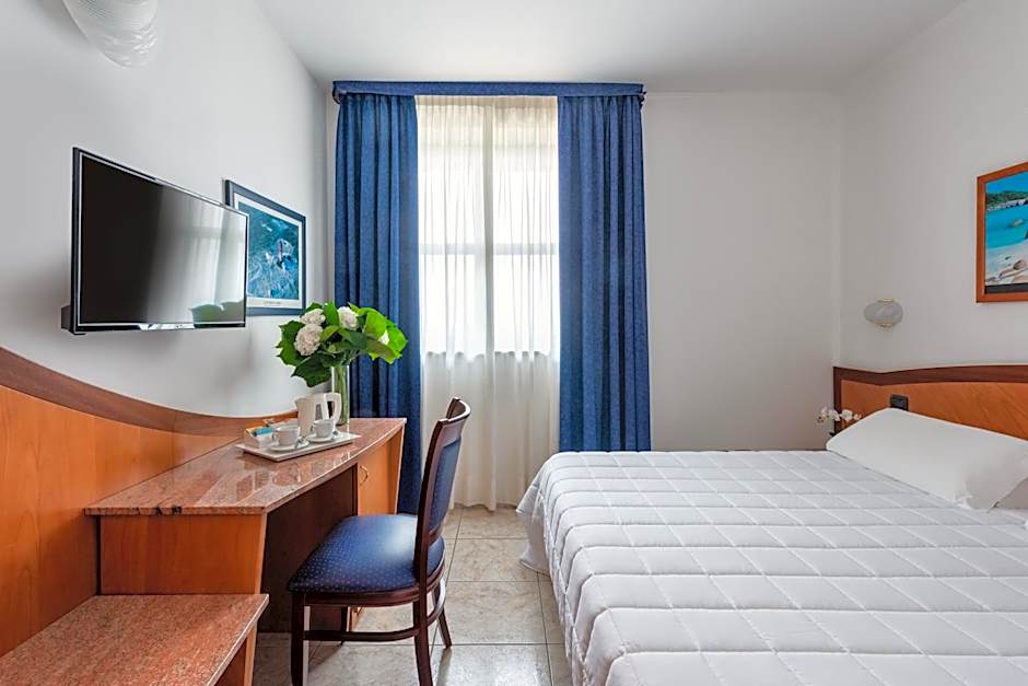 Air-conditioned double room featuring a satellite TV, mini-bar and tiled floors. Wi-Fi is free. The Hotel has a Summer Swimming Pool (Entrance with extra charge)